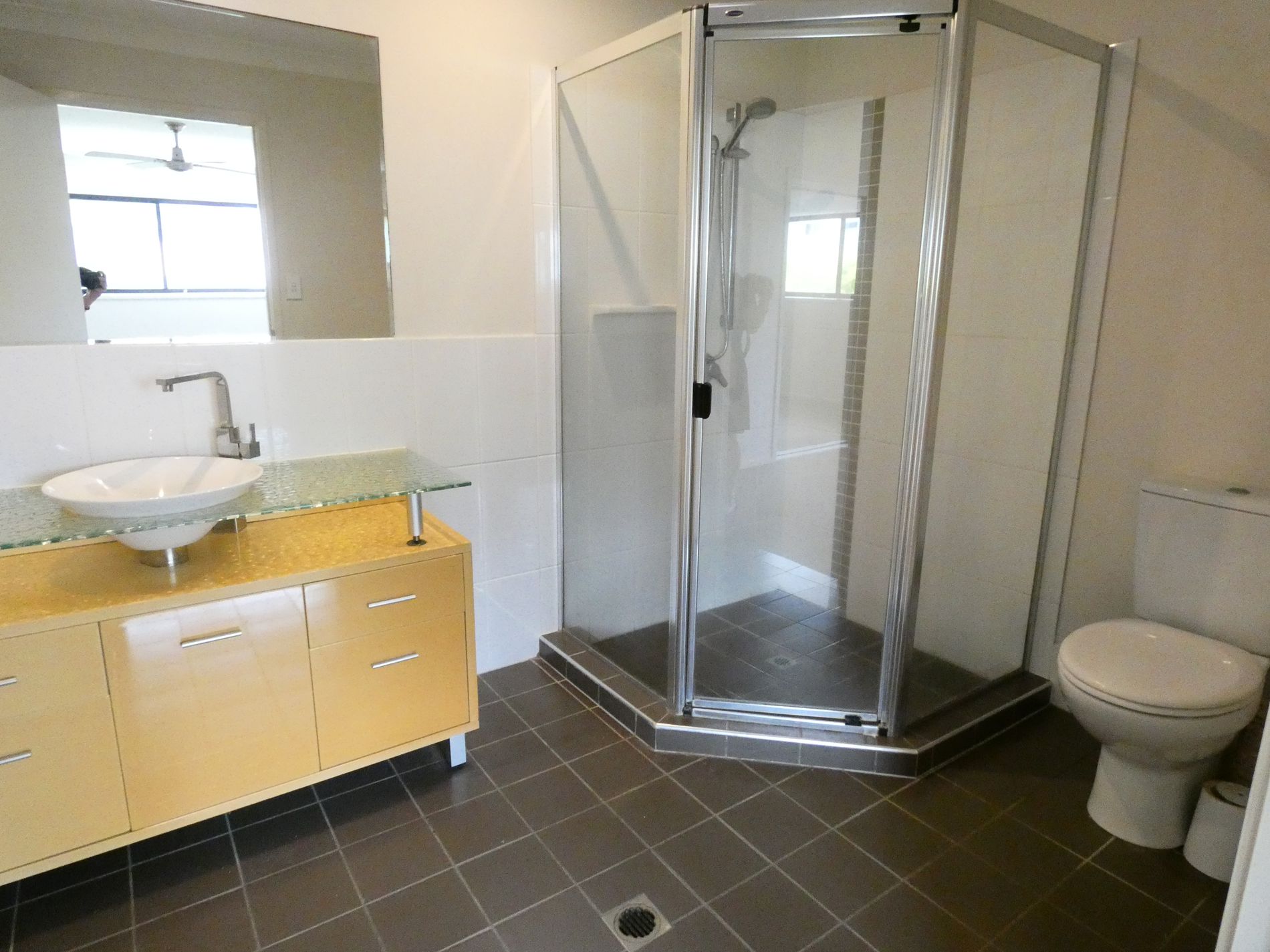 Upstairs boasts a spacious main bathroom with double basins, shower and bath, and 3 good-sized bedrooms, all with built-in robes and ceiling fans. The main bedroom has an ensuite & mirrored robes.