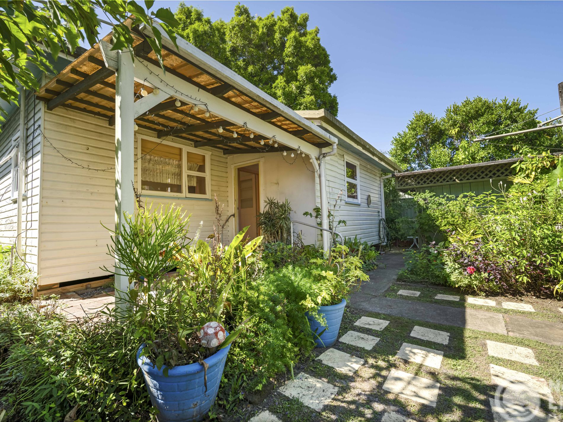 A covered rear entertaining area connects seamlessly to a deep, private backyard framed by established greenery. With rear lane access and an existing outbuilding already in place, the potential here is significant — whether for a studio, guest accommodation or future transformation (STCA).